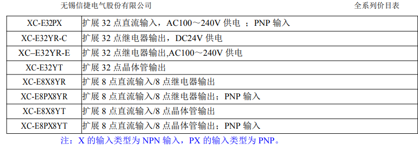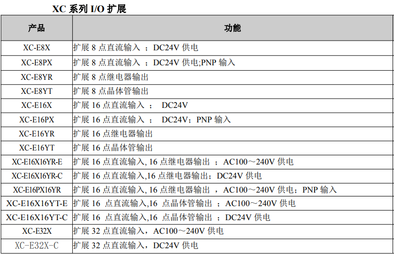擴展8點晶體管輸出580XC-E16X擴展16點直流輸入;DC24V