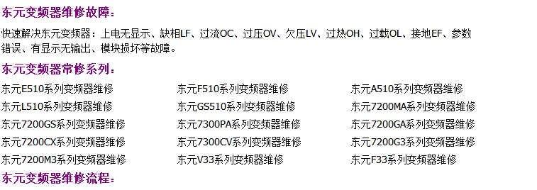 TECO東元變頻器變頻器維修,可快速解決TECO東元變頻器變頻器故障:整流模塊損壞、逆變模塊損壞、上電無顯示、顯示過電壓或欠電壓、顯示過電流或接地短路、電源與驅(qū)動(dòng)板啟動(dòng)顯示過電流、空載輸出電壓正常,帶載后顯示過載或過電流、有顯示無輸出等。