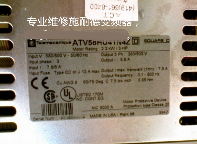 Schneider施耐德變頻器ATV58HU41N4Z維修 施耐德2.2KW變頻器維修